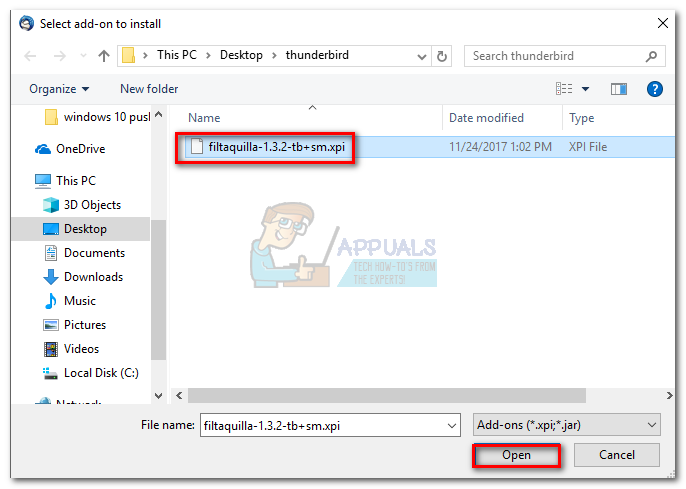 - Navigate to where you downloaded the add-on, select it and click Open.