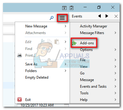 - Open Thunderbird, tap the menu icon in the top-right corner and click on Add-ons.