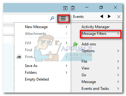 - Click the menu button again and go to Message Filters > Message Filters.