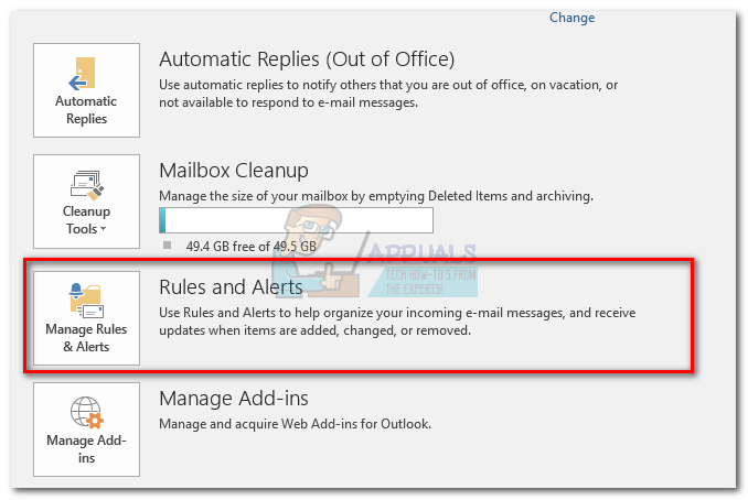 - Next, go to File and click on Rules and alerts.