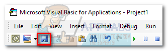 - Now hit the Save icon in the top-left corner of the Visual Basic window. Now you can safely close Visual Basic.