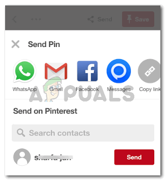 Send a pin This will open a couple of sharing options for you. You can send this pin to someone on Whats app, email, Facebook, or even copy the link as you like. You can even send the pin on Pinterest, by clicking on the red ‘Send’ icon for the people you want to send this to. The send option is visible right below all of these options.