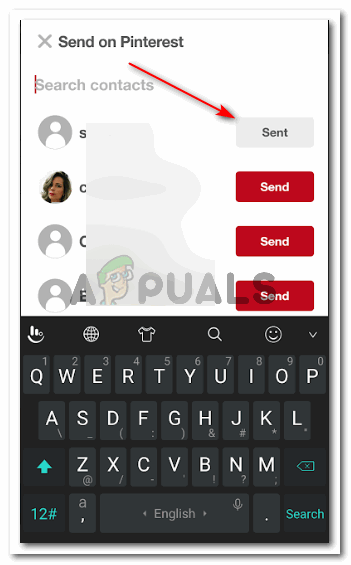 Different ways to share the pin Once you click the red Send button, the icon changes to white and has ‘sent’ written on it now. This, in a way, is a confirmation that the pin has been sent to the user.