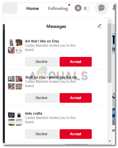 Click on the bubble-like icon in the top right corner. The bubble-like icon represents ‘message’. Here, you will find all your messages from other users on Pinterest, if you have any.
