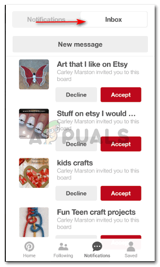 To send a message to someone on Pinterest, click on the tab for ‘New Message’, which is right under the headings for Notifications and Inbox.