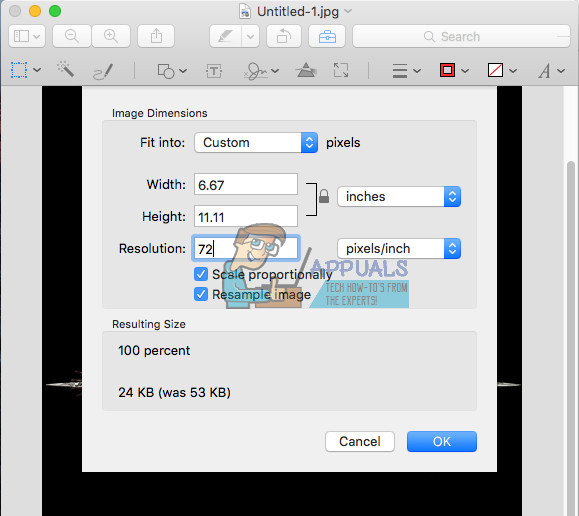 - Once the image loads up in Preview, click Tools on the menu bar and choose Adjust Size.