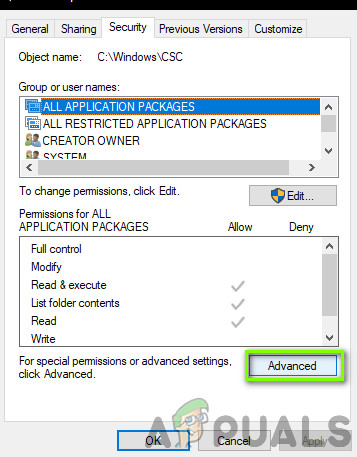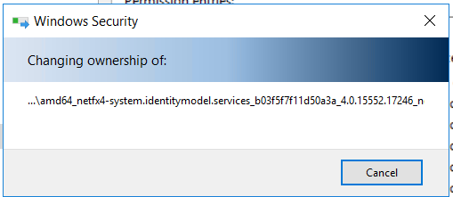 - Click Apply and then click If you have just taken ownership of this object, you will need to close and reopen this object´s properties before you can view or change permissions.