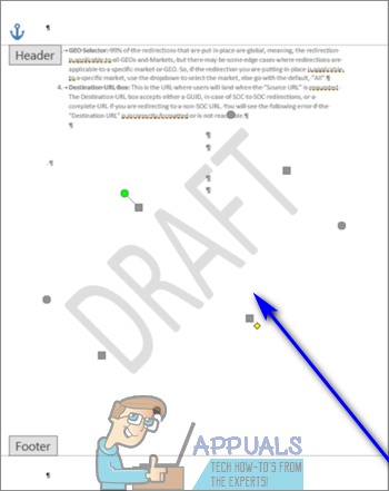 - Once you have access to the header area of the document and everything it contains, click on the watermark to select it.