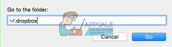- Copy and paste this line into the dialog box that just appeared (without the quotes). “~/.dropbox”