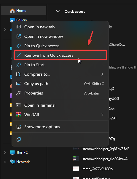 - Repeat these steps for any other items you want to remove. Your Quick Access section should now only display the items you prefer.