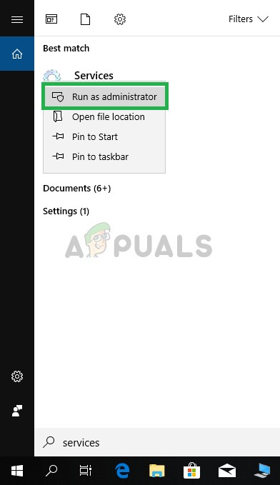 Typing in Services in the search bar - Right-Click on the services icon and select the “Run as Administrator” option.