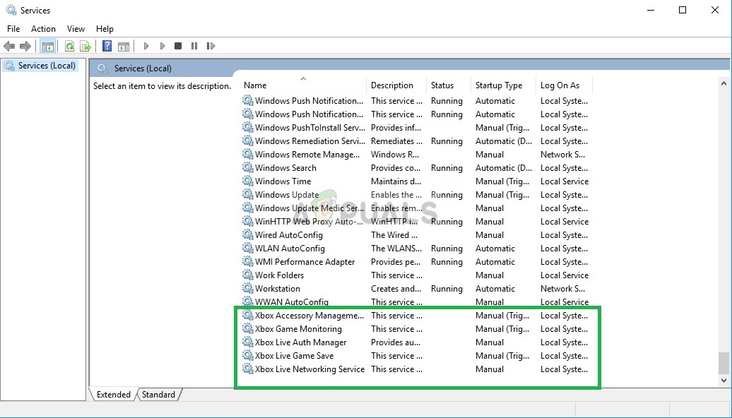 Right-Clicking on Services and selecting the Run as Administrator Option - Once in there, Scroll down to the bottom of the list and you will see options related to Xbox Live.