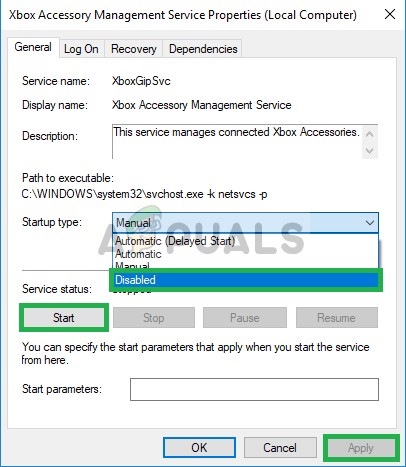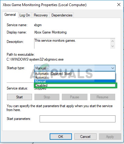 Selecting Disabled in the Dropdown - Similarly, double click on the “Xbox Live Auth Manager” and click on Stop in the popup