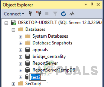 “Unable to rename test. (ObjectExplorer)