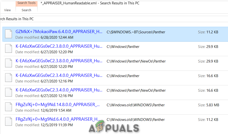 - Tap on This PC. Type ‘*_APPRAISER_HumanReadable.xml’ in the search box. After that, press Enter.