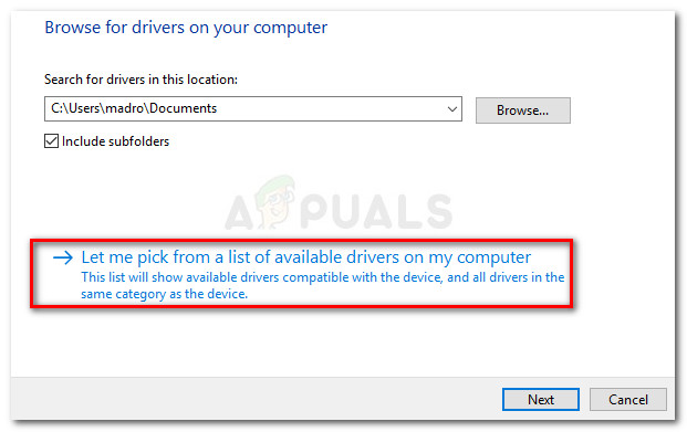 Browser for the driver manually - Next, click on Let me pick from a list of available drivers on my computer.