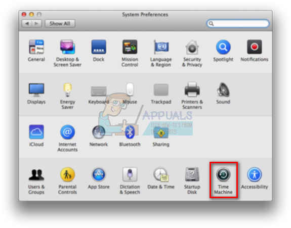 - Tap on the Time Machine icon in order to open the settings section related to it.