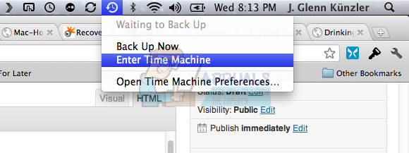 - The Time Machine icon should now appear in the menu bar so make sure you click on its icon and select the Enter Time Machine option.