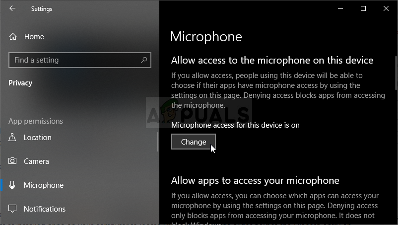 - Ensure Microphone access for this device is enabled. If not, click Change and enable it.