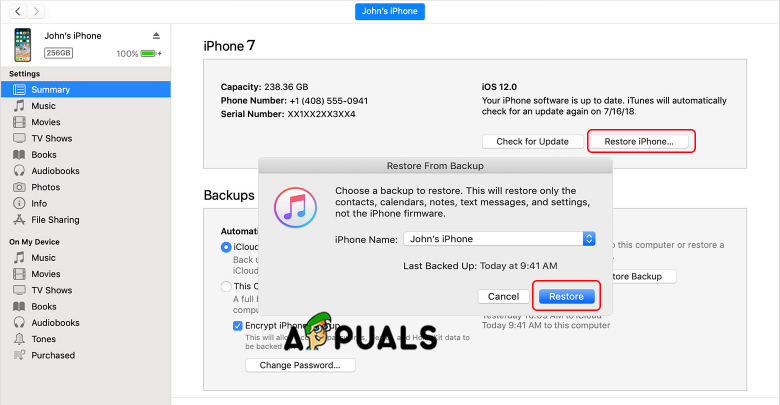 - Select your backup with the most recent date and click Restore. This process will restore your device without an update.