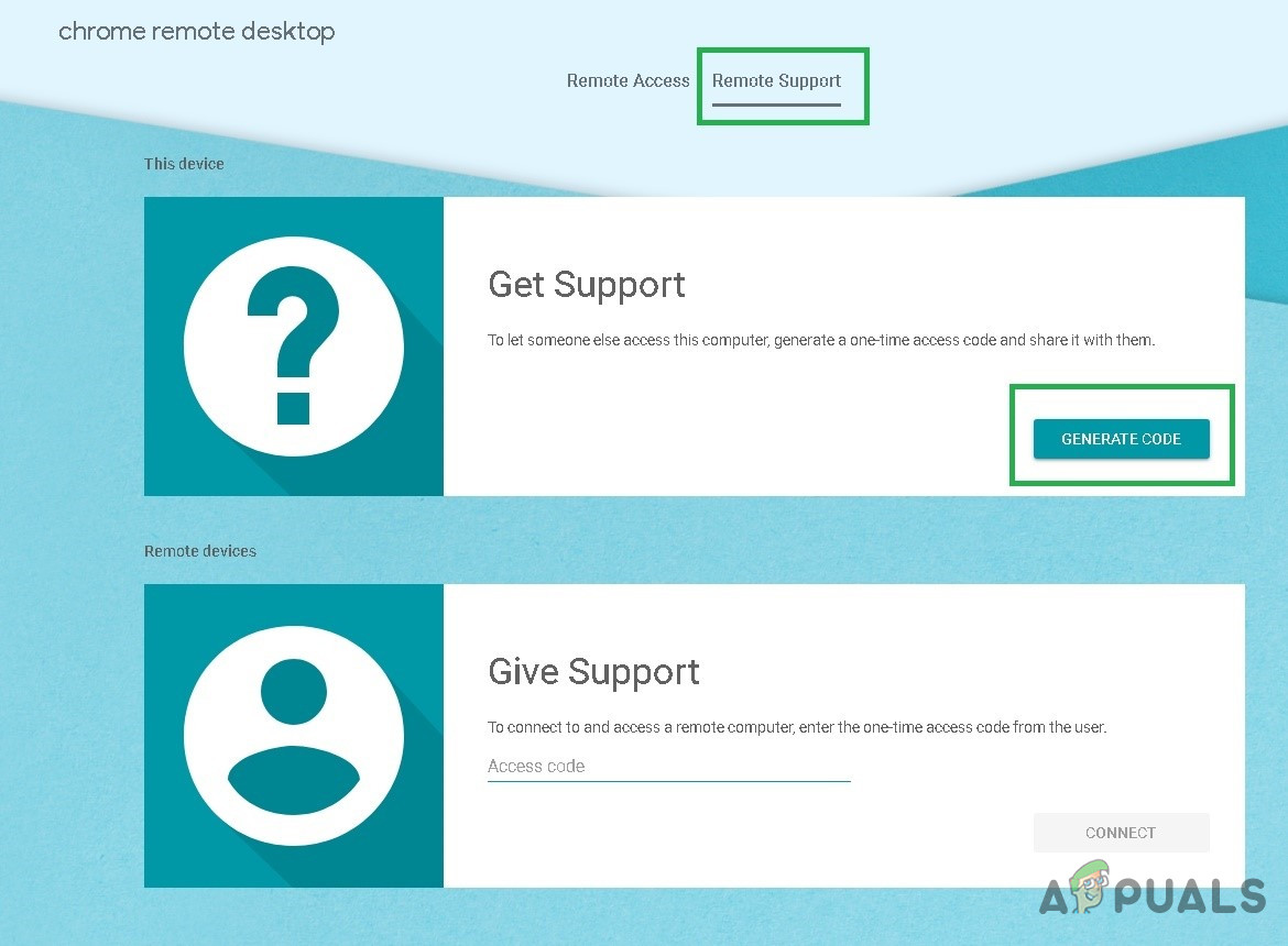 - Click on the remote support tab and in the Get Support section, click on the Generate Code.