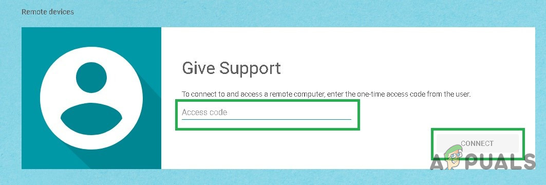 - Click on the Remote Support Tab and in the Give Support section enter the code generated in Step 15
