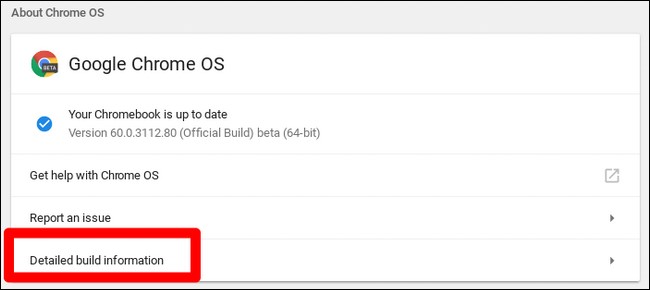 In the “About Chrome OS” window, find “Detailed build information” and click this button.