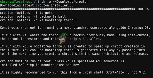 “sudo install -Dt /usr/local/bin -m 755 ~/Downloads/crouton”
