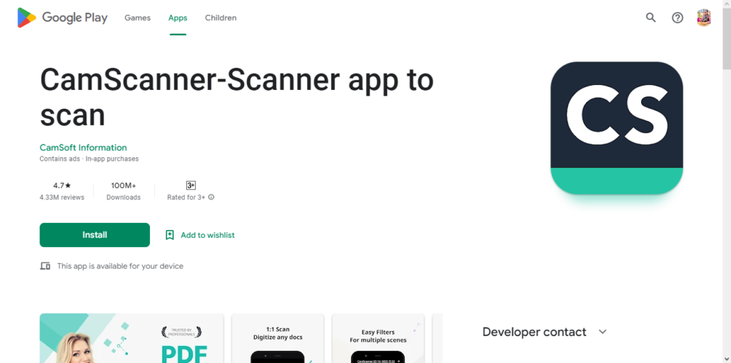 Get it on Google Play4. CamScanner