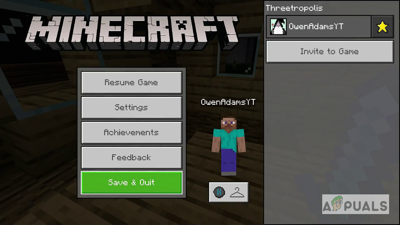 - Go to Minecraft’s main screen. If you are already logged in to the game, you should Save and Quit and return to the main screen.