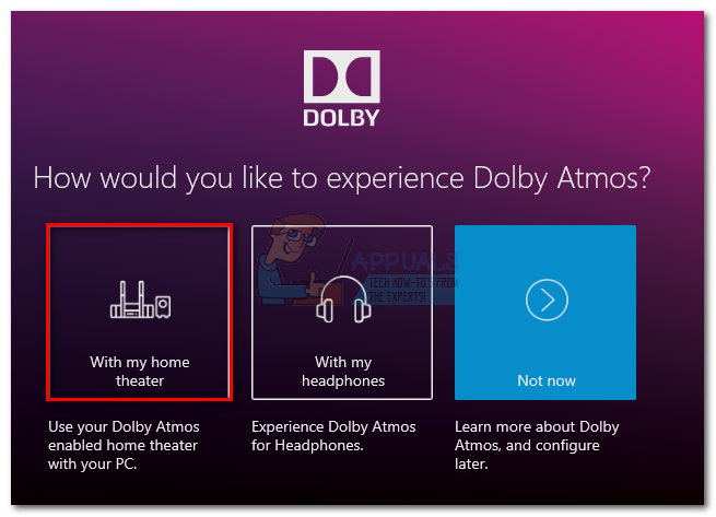 - Open the Dolby Access app and click the With my home theater box.