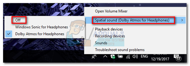If you decide to disable Dolby Atmos for headphones while the trial is still active, simply right-click on your sound icon (bottom-right corner) and set the Spatial Sound to Off.