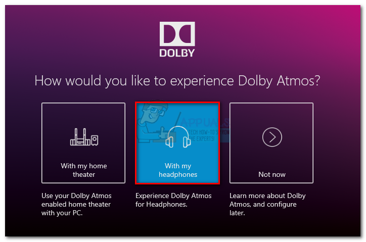 - Open the Dolby Access app and click the With my headphones box.
