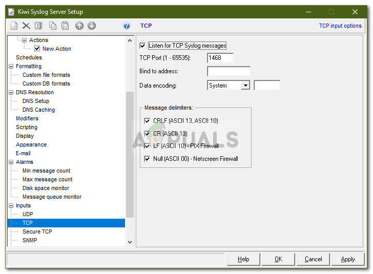 Enabling Listen to TCP - Once done, all the messages sent to the server on the UDP port 514 or any other that you have configured will be displayed.