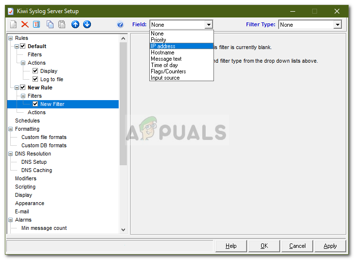 - Basically, filters are used to decide what will happen when a message is received. With the tool, you can filter a message based upon priority, IP address range, the content of the message, the source of the message AKA hostname etc. You can set a filter by creating a new rule or in the rules created by Default. To create a new rule, right-click Rules and select Add rule. Then, highlight Filter, right-click and select Add filter.