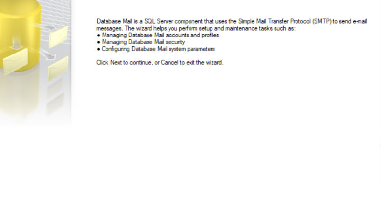Configuring database - Now click on “Configure Database mail”. You will see “Database Mail Configuration Wizard”. Click on next
