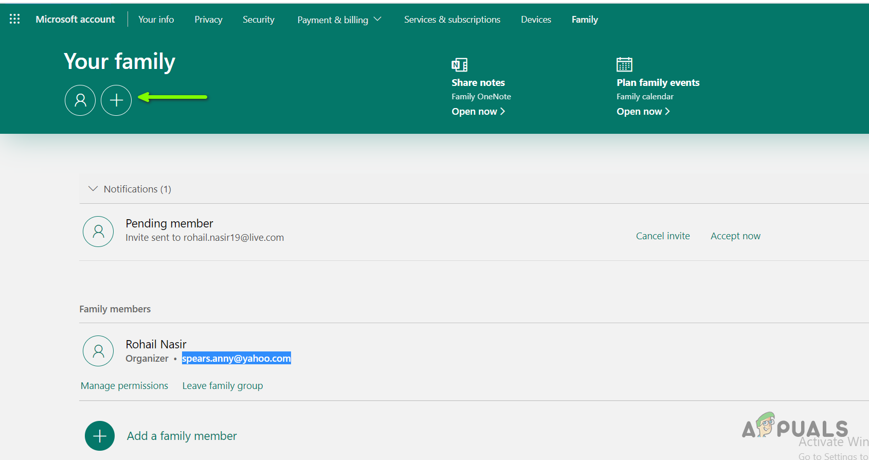 Add your family member to Microsoft Family - Your child will now have to Sign-in to their Microsoft account and accept the invite sent to them.