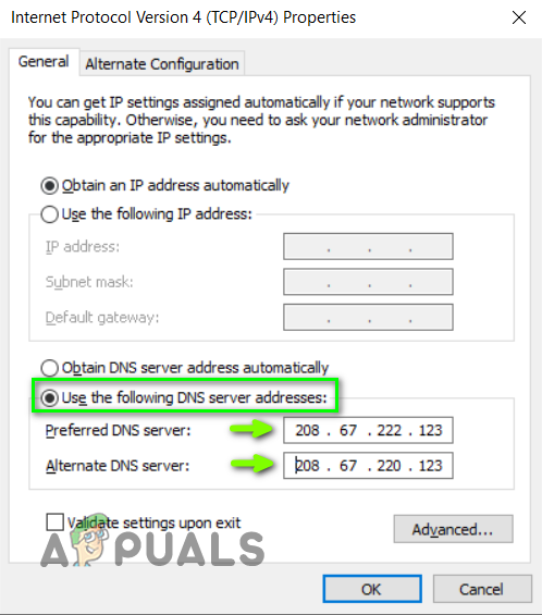 Change the option to Use following DNS server addresses - Now open the Command Prompt and enter the following command to clear the DNS cache