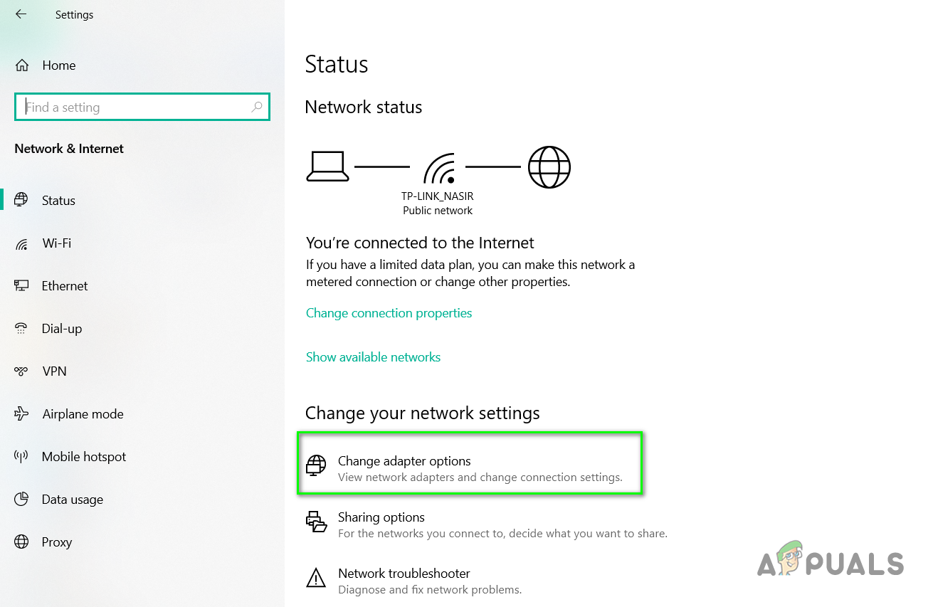 Go to your computer Settings and click Network and Internet - Click the option that says Change adapter options