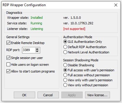 Enable RDP on Windows 10 Home Versions using RDPWrap