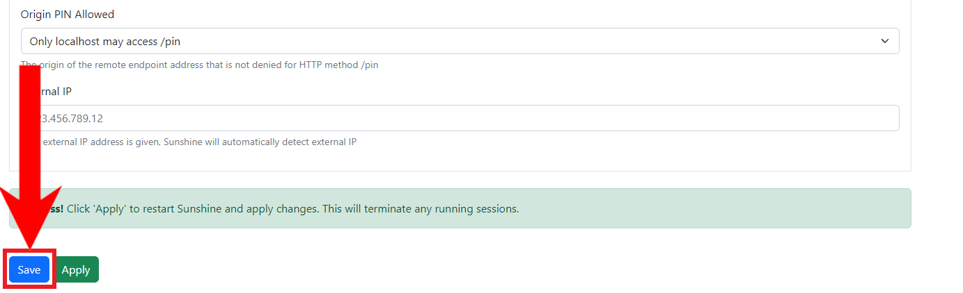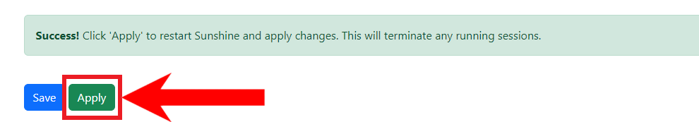 Hit Save - Finally, hit Apply to save your changes to your Sunshine app.