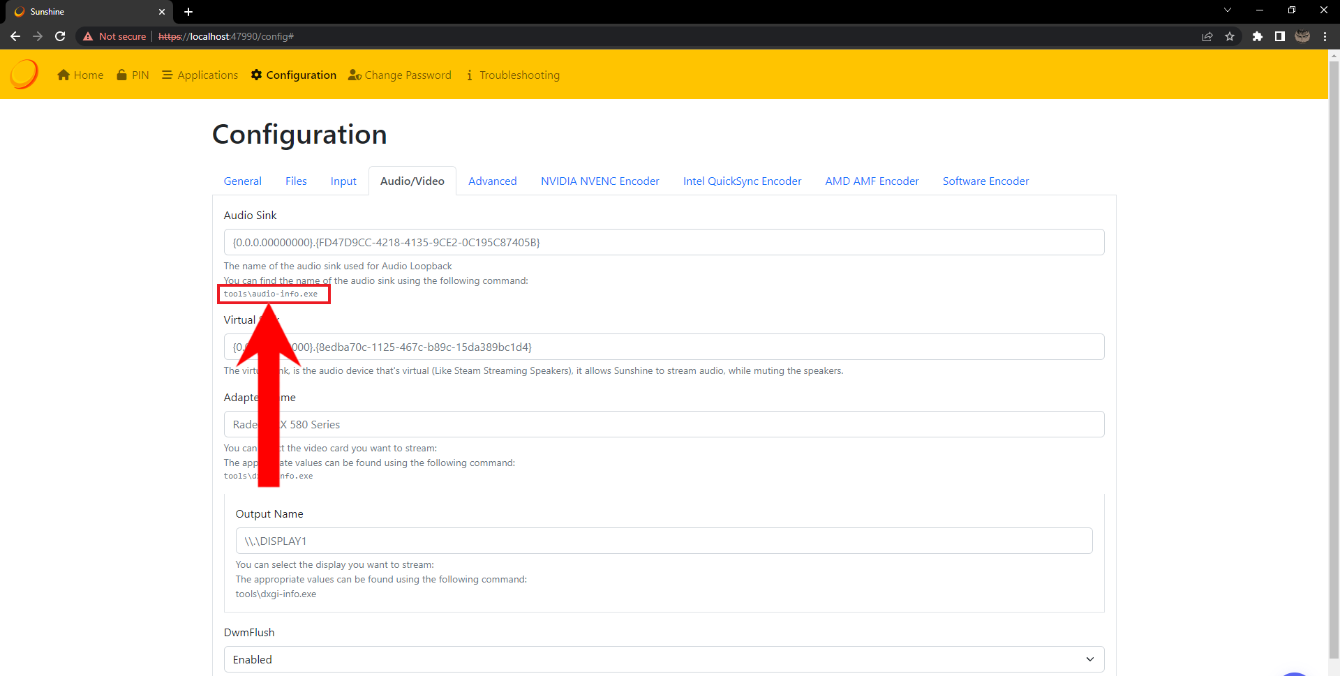 Select Audio/Video - In order to define the audio output device for Sunshine, we’ll need to run a command in CMD or PowerShell. Copy the command given.
