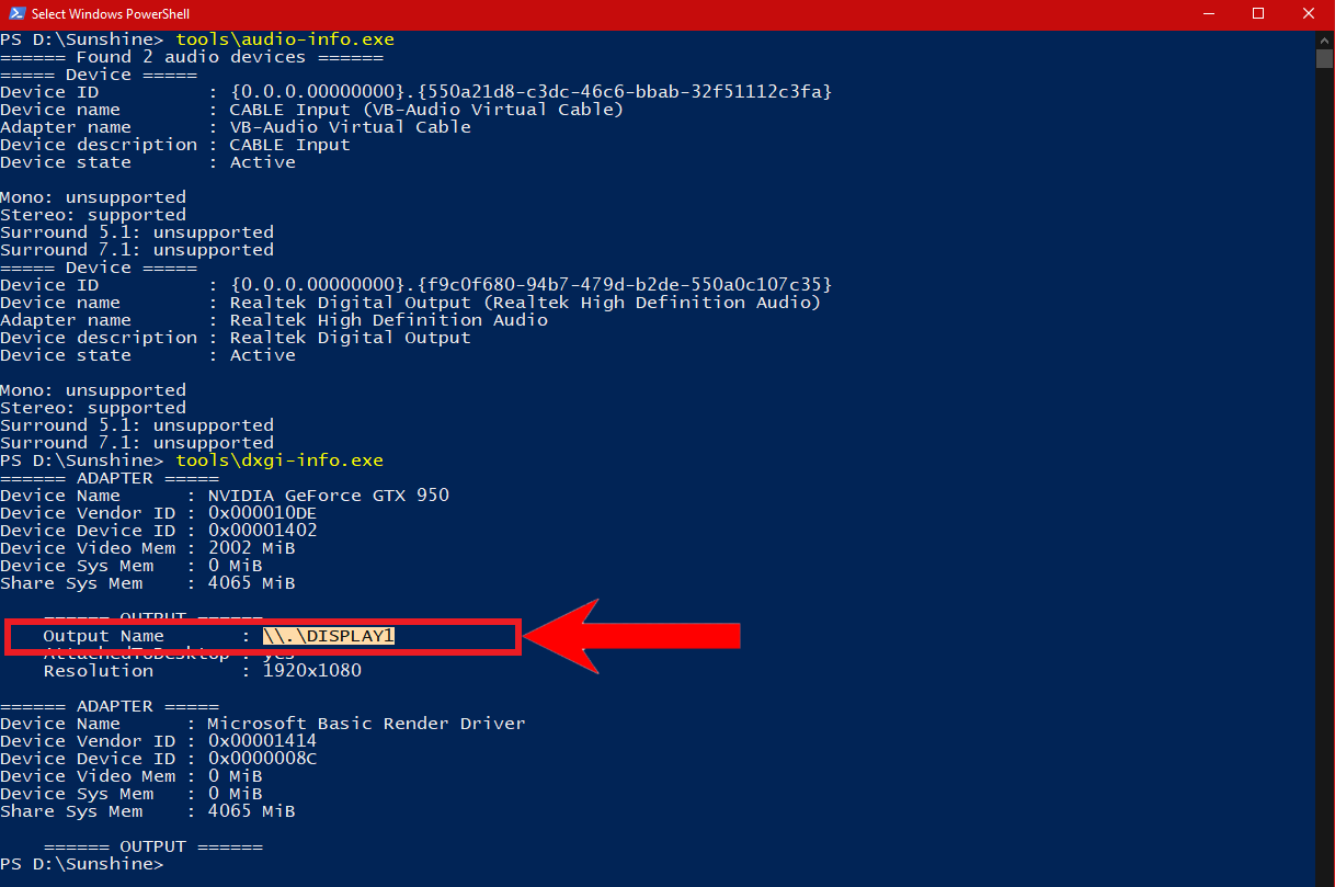 - Paste this command: tools\dxgi-info.exe and hit Enter. Afterwards, simply copy the display’s Output Name.