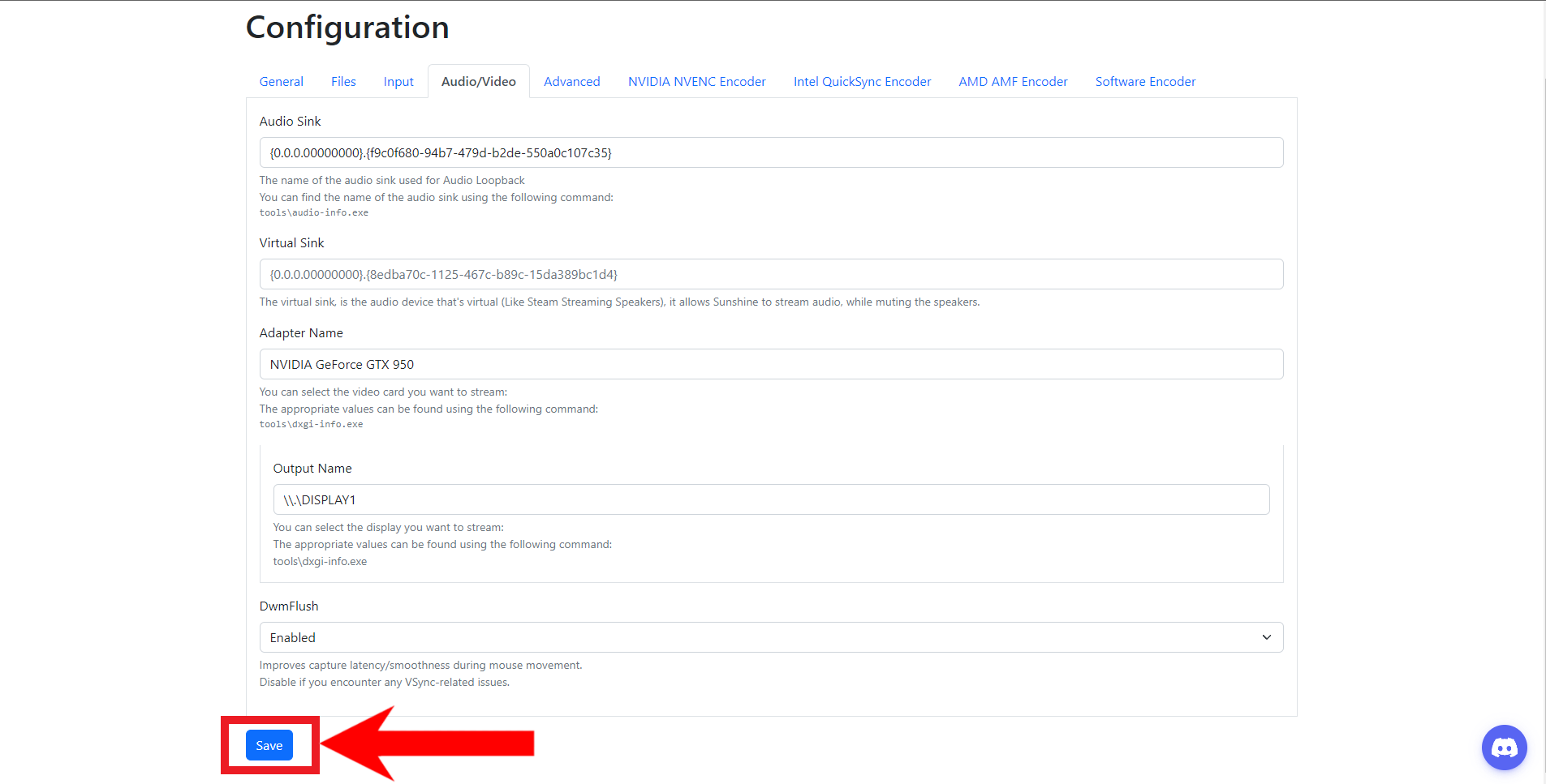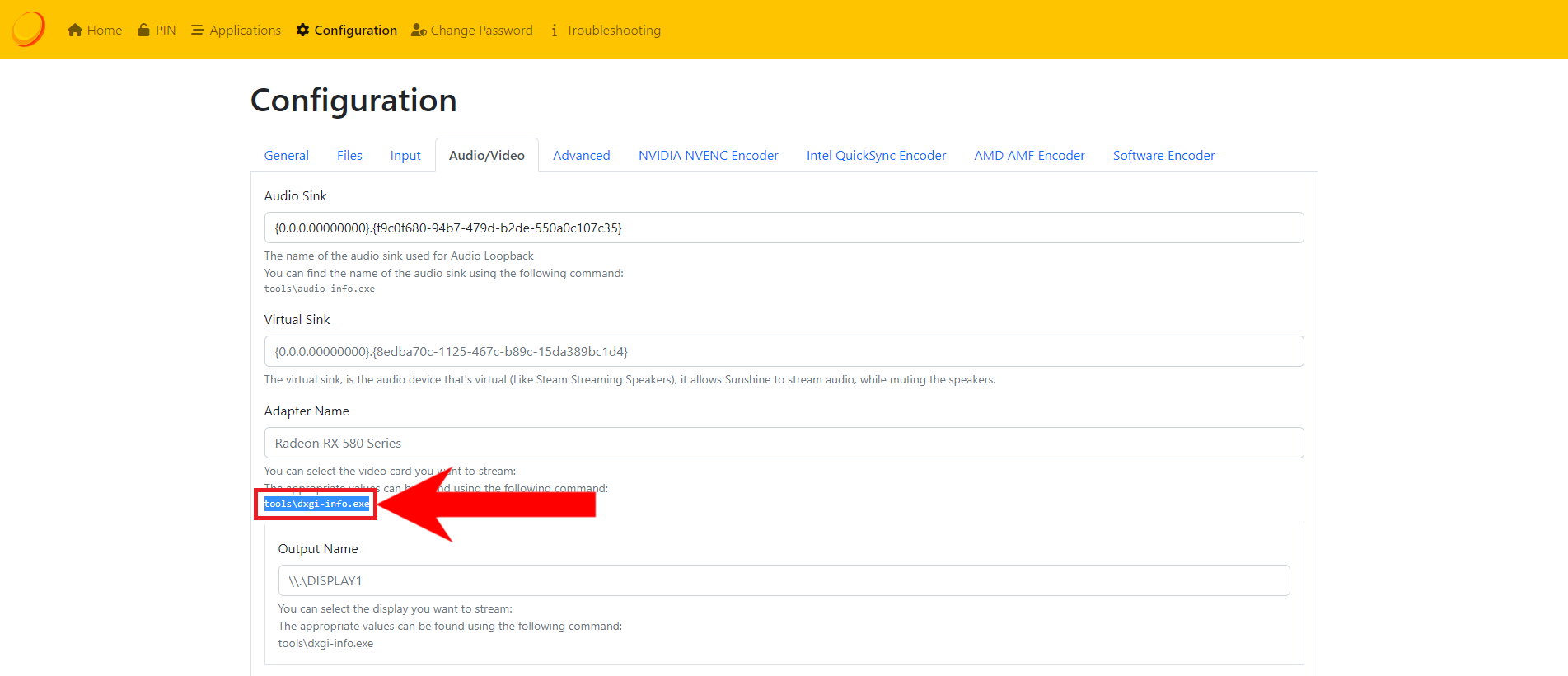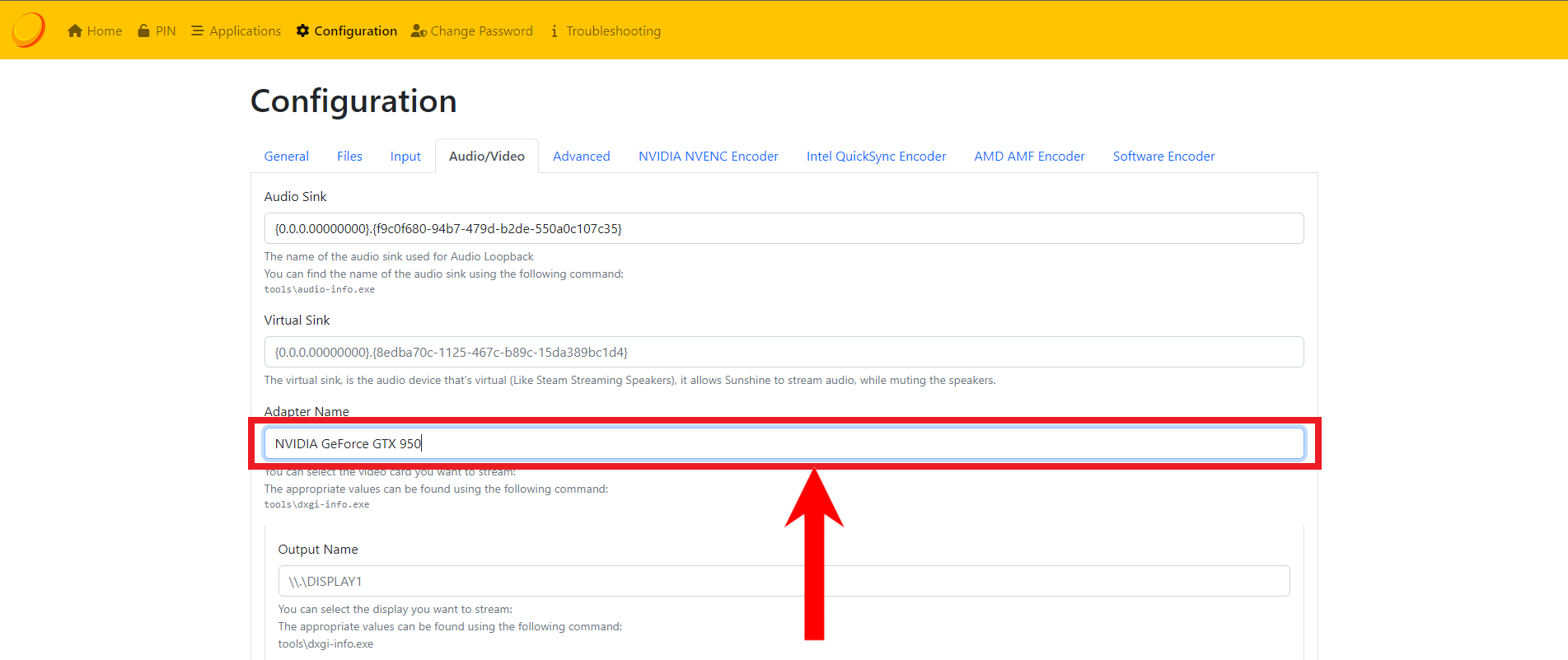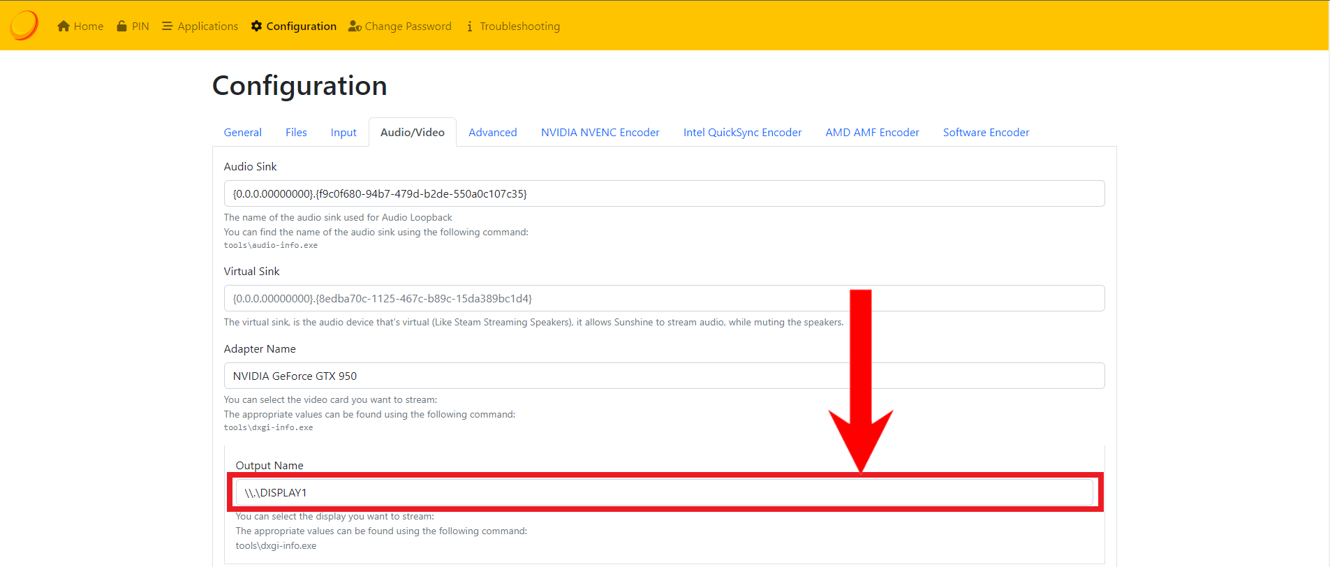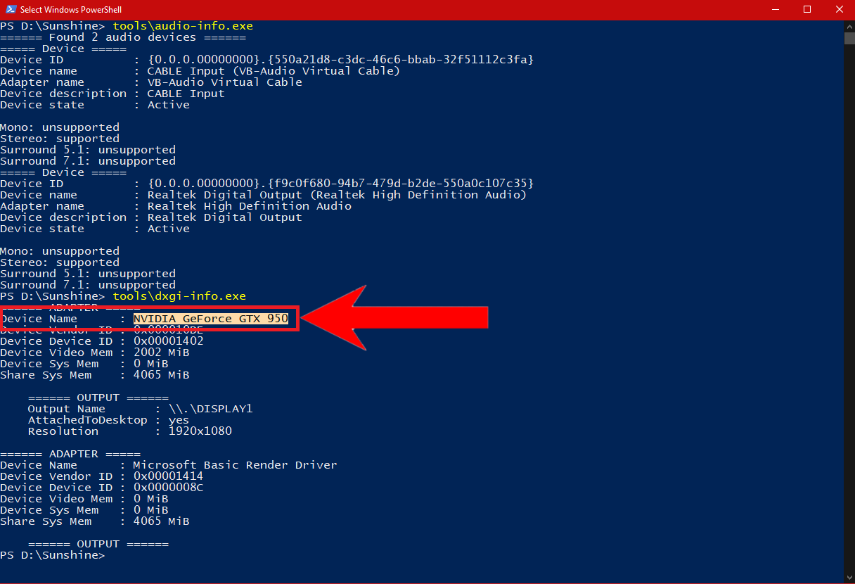 Paste the ID here - Next, we’ll have to define what GPU the app will use and which display’s stream will be broadcasted. To do this, we’ll need to run another command, which has fortunately given to us by the Sunshine developers.