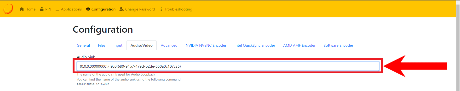 Copy the Device ID of your desired device - Now, paste the ID in the Audio Sink bar.