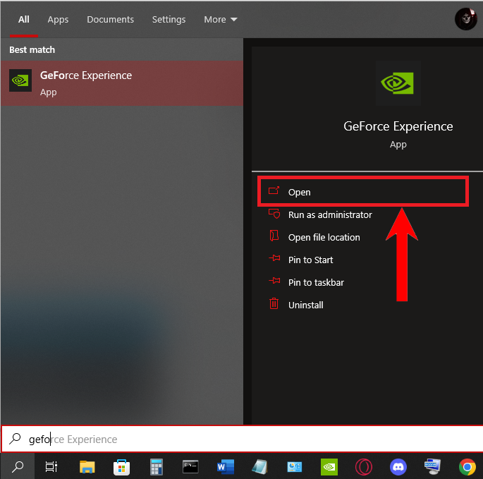 Click on the Search icon - Now, begin typing GeForce Experience into the Search bar. Almost instantly, the app should show up. Click Open. Follow our guide to troubleshoot if the app is not opening.