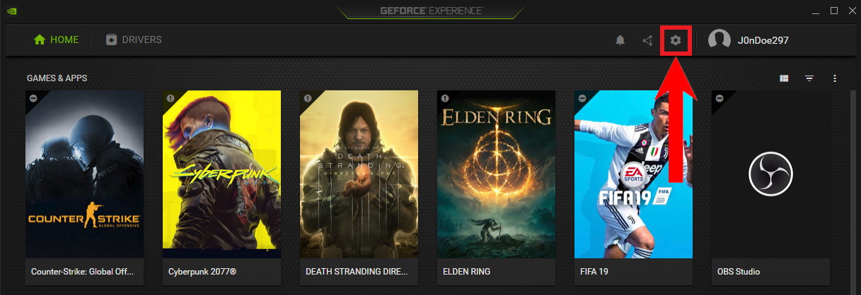 Open the GeForce Experience app - Once the app opens, click on the settings icon to open up the Settings.