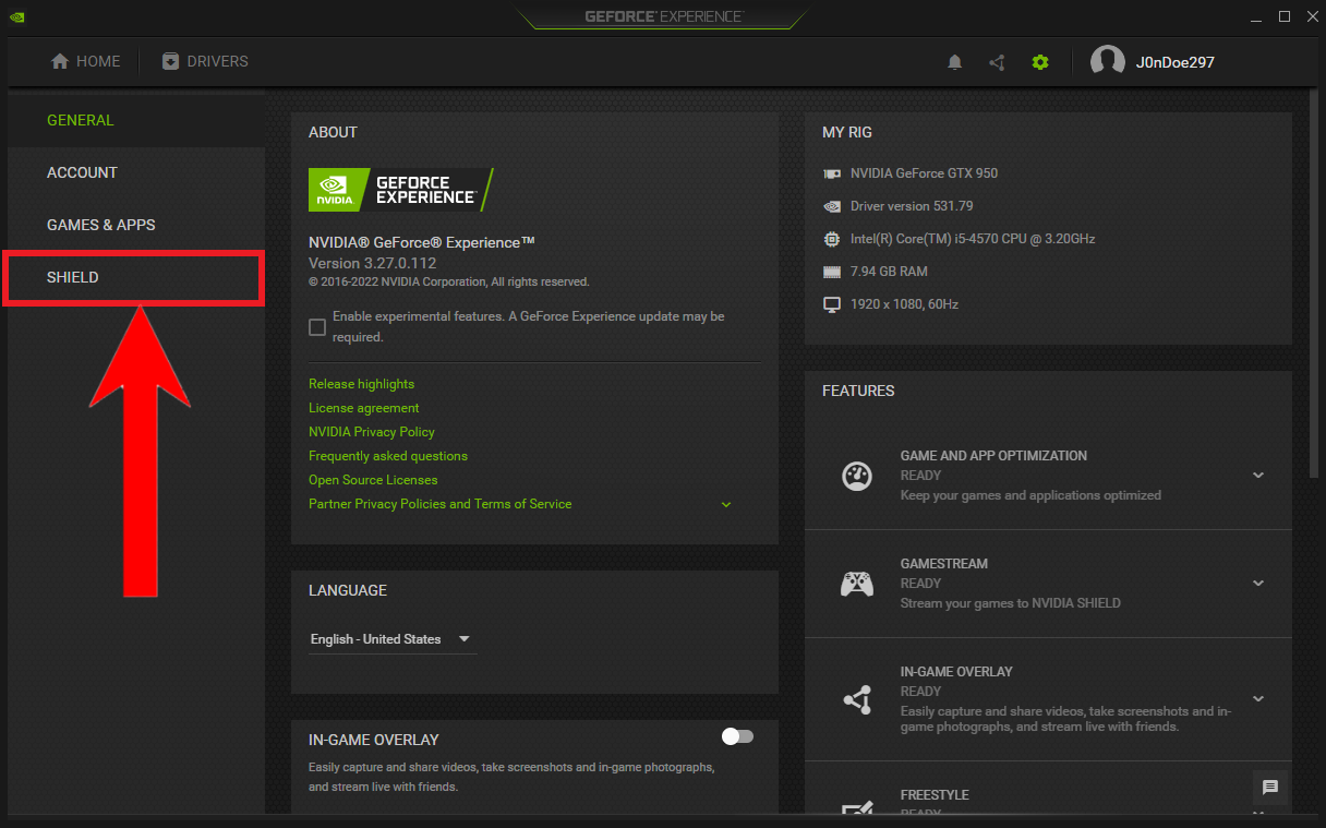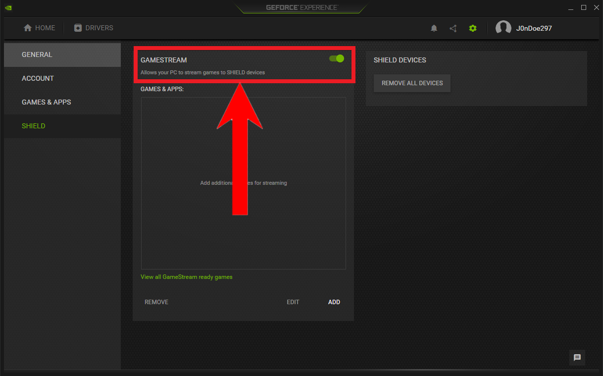 Click on Shield - Finally, turn the GameStream switch on