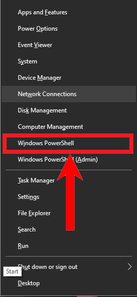 Hover the cursor on Start - Now, right-click on the Start button. From the menu, choose Windows PowerShell.