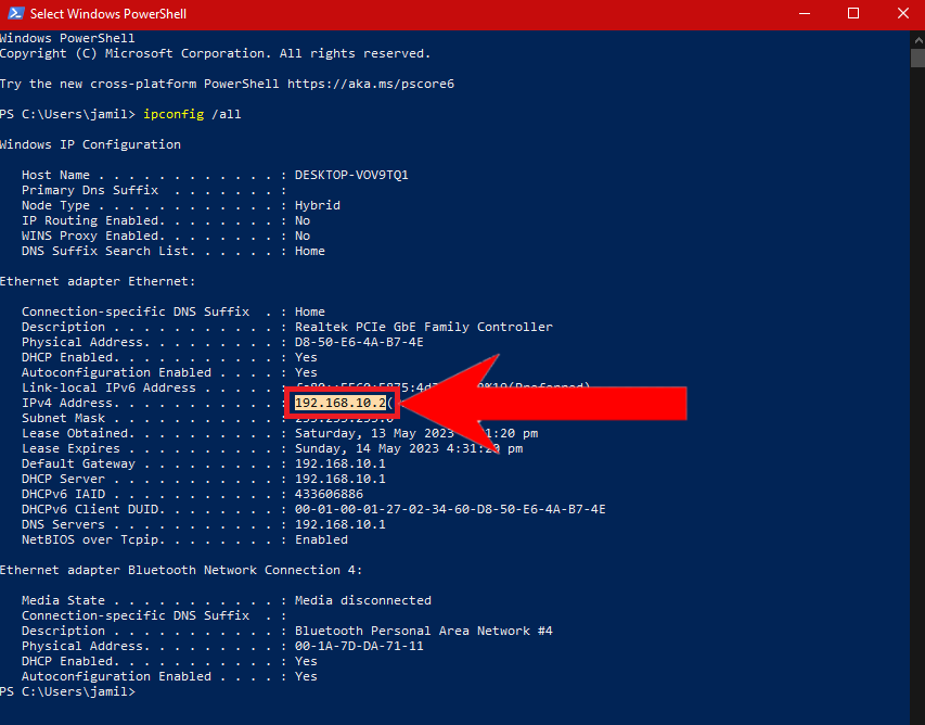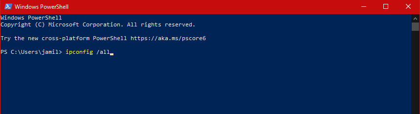 Run the command in PowerShell - From the output displayed, copy this IP address. Keep its saved on Notepad as we’ll need it later on.